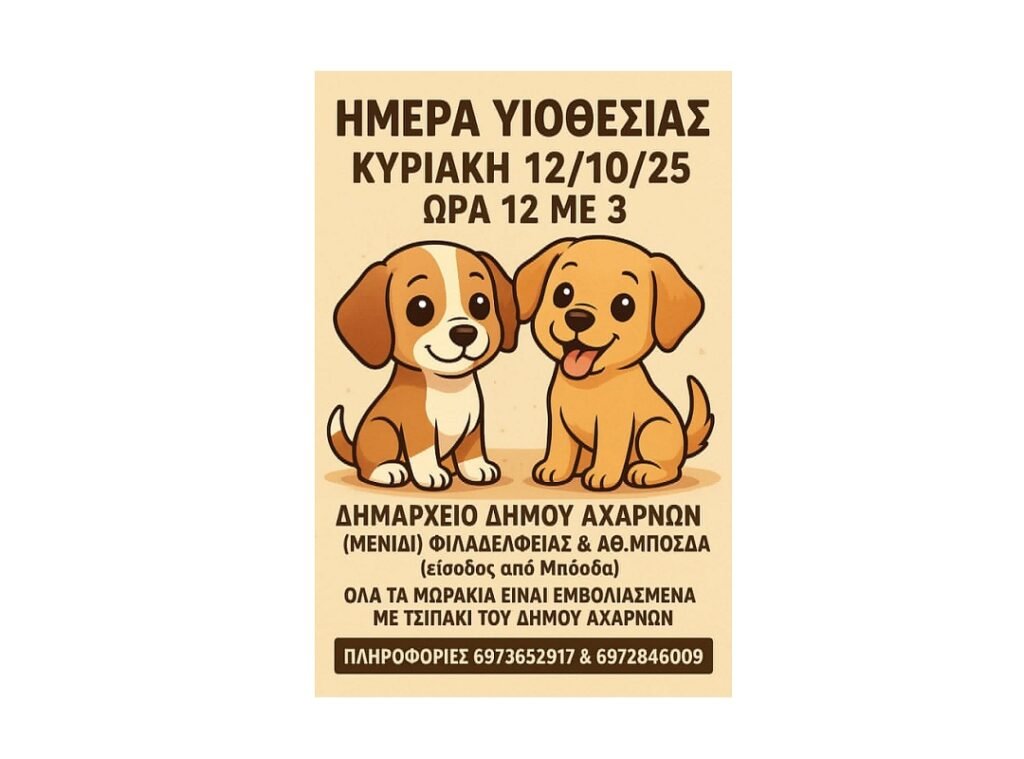 Ημέρα υιοθεσίας κουταβιών στον Δήμο Αχαρνών