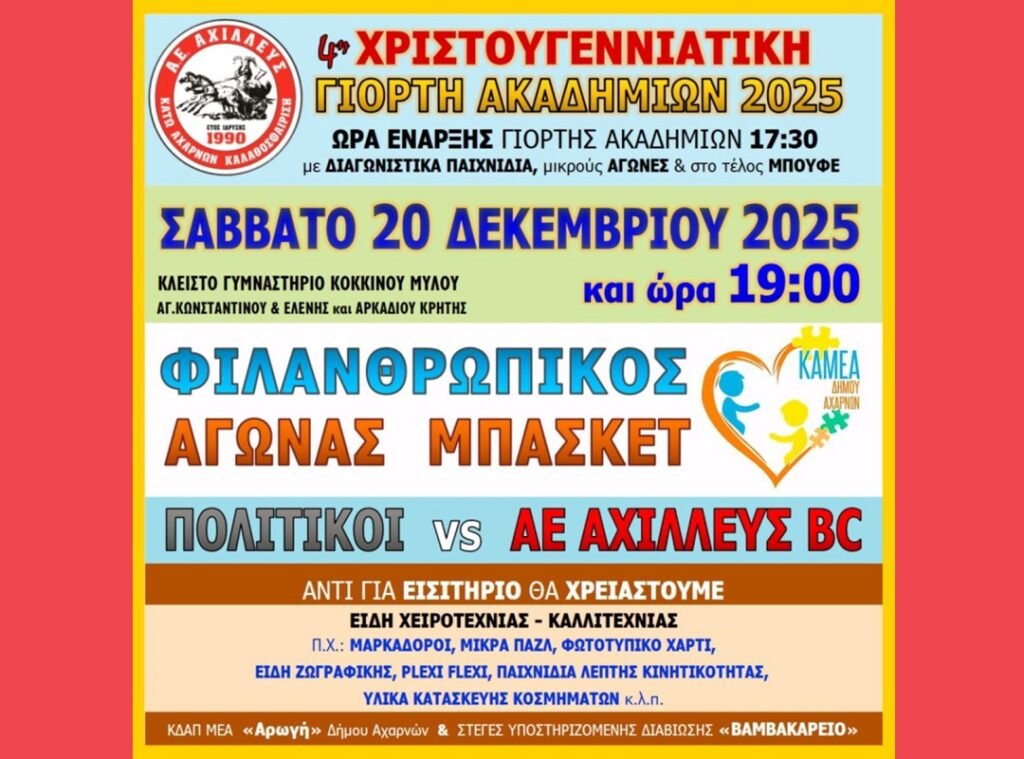 4η Χριστουγεννιάτικη Γιορτή της ΑΕ ΑΧΙΛΛΕΥΣ BC