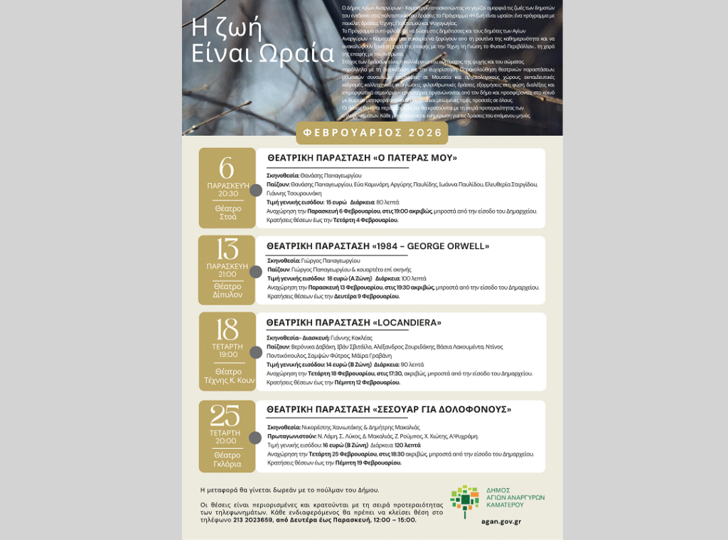 Η ζωή είναι ωραία τον Φεβρουάριο στον Δήμο Αγίων Αναργύρων-Καματερού