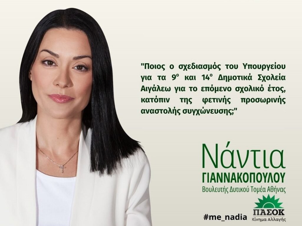 Νάντια Γιαννακοπούλου: Ερώτηση για το 9ο και το 14ο Δημοτικά Σχολεία Αιγάλεω