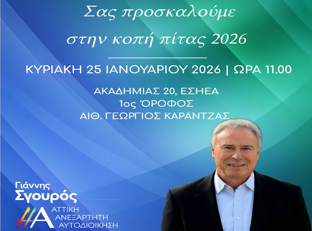 Η παράταξη «ΑΤΤΙΚΗ ΑΝΕΞΑΡΤΗΤΗ ΑΥΤΟΔΙΟΙΚΗΣΗ» την Κυριακή 25 Ιανουαρίου 2026 και ώρα 11.00 π.μ. πραγματοποιεί …
