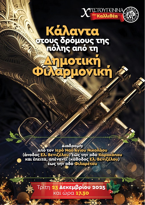 Η Δημοτική Φιλαρμονική θα περιηγηθεί στους δρόμους της πόλης, παρουσιάζοντας τα χριστουγεννιάτικα κάλαντα.