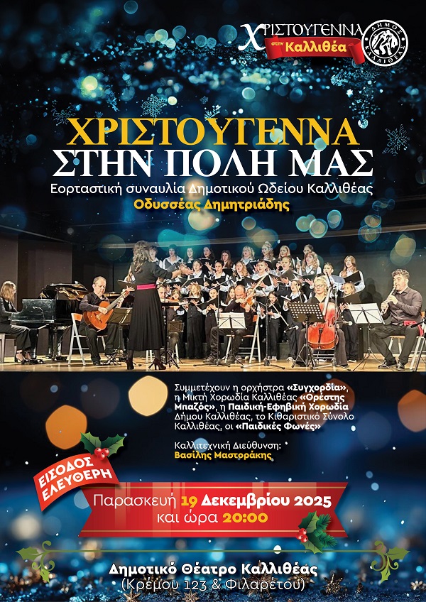 Εορταστική συναυλία του Δημοτικού Ωδείου Καλλιθέας «ΟΔΥΣΣΕΑΣ ΔΗΜΗΤΡΙΑΔΗΣ»