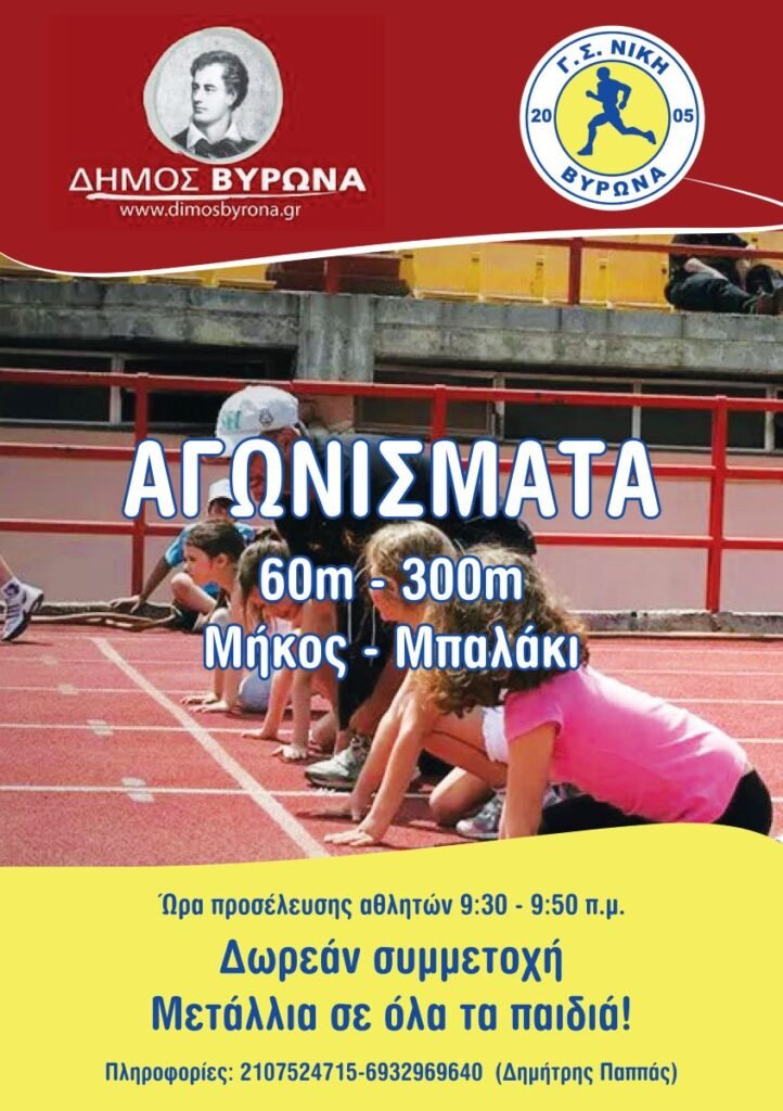 Περισσότερες πληροφορίες στο Τμήμα Αθλητισμού του Δήμου Βύρωνα στο τηλέφωνο: 210 7652695.