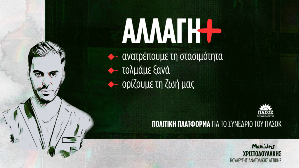 Με μια κίνηση που εκπέμπει πολιτική ωριμότητα και στρατηγικό βάθος, ο Μανώλης Χριστοδουλάκης αναλαμβάνει την πρωτοβουλία των κινήσεων ενόψει του Συνεδρίου. Η πλατφόρμα του «Αλλαγή+» δεν είναι απλώς μια πρόταση· είναι ένα κάλεσμα ηγετικής ευθύνης για ένα ΠΑΣΟΚ που δεν θα ετεροπροσδιορίζεται, αλλά θα πρωταγωνιστεί.