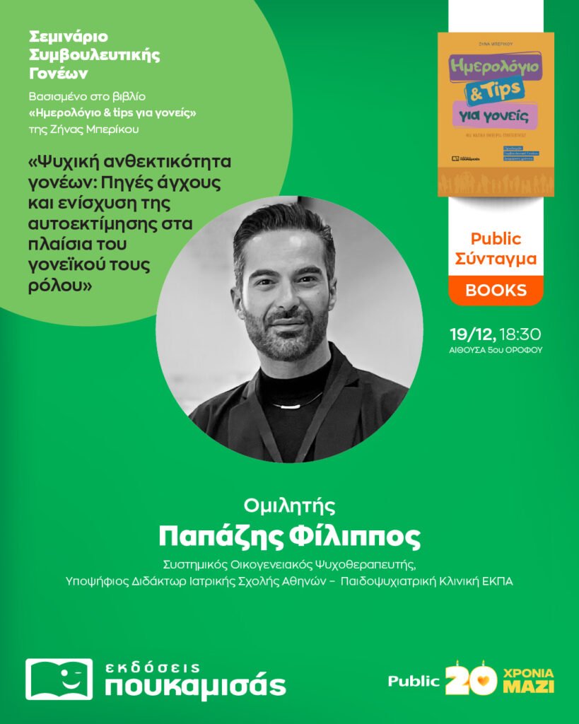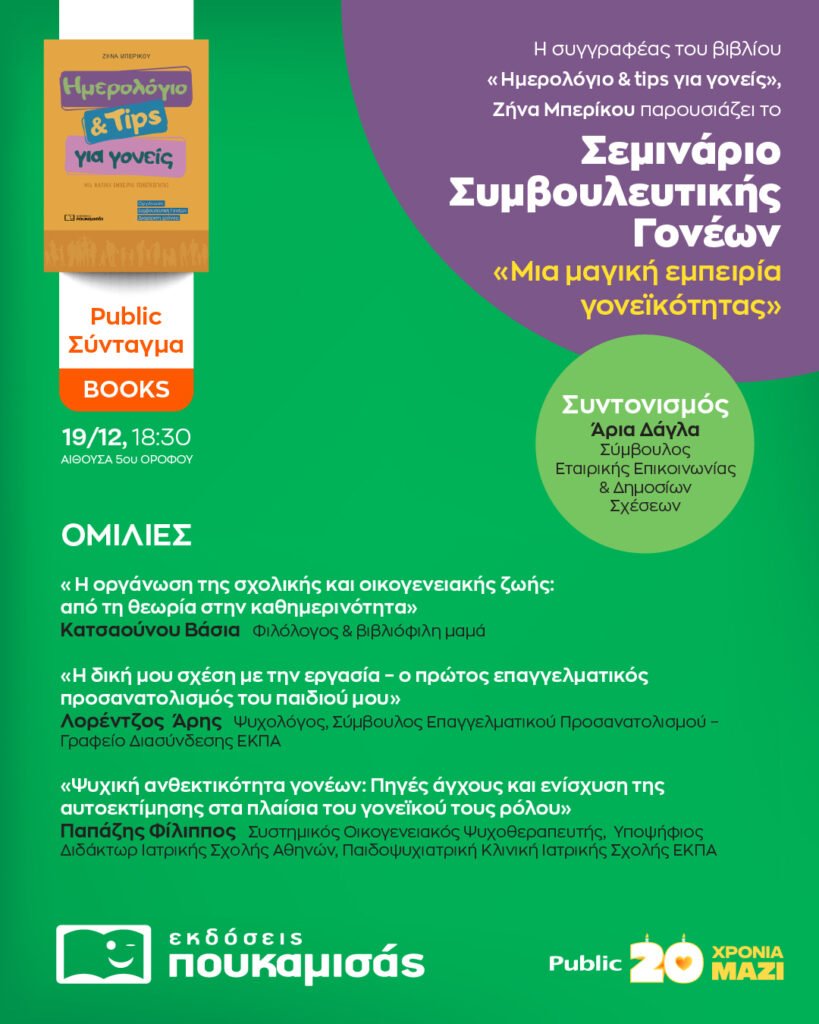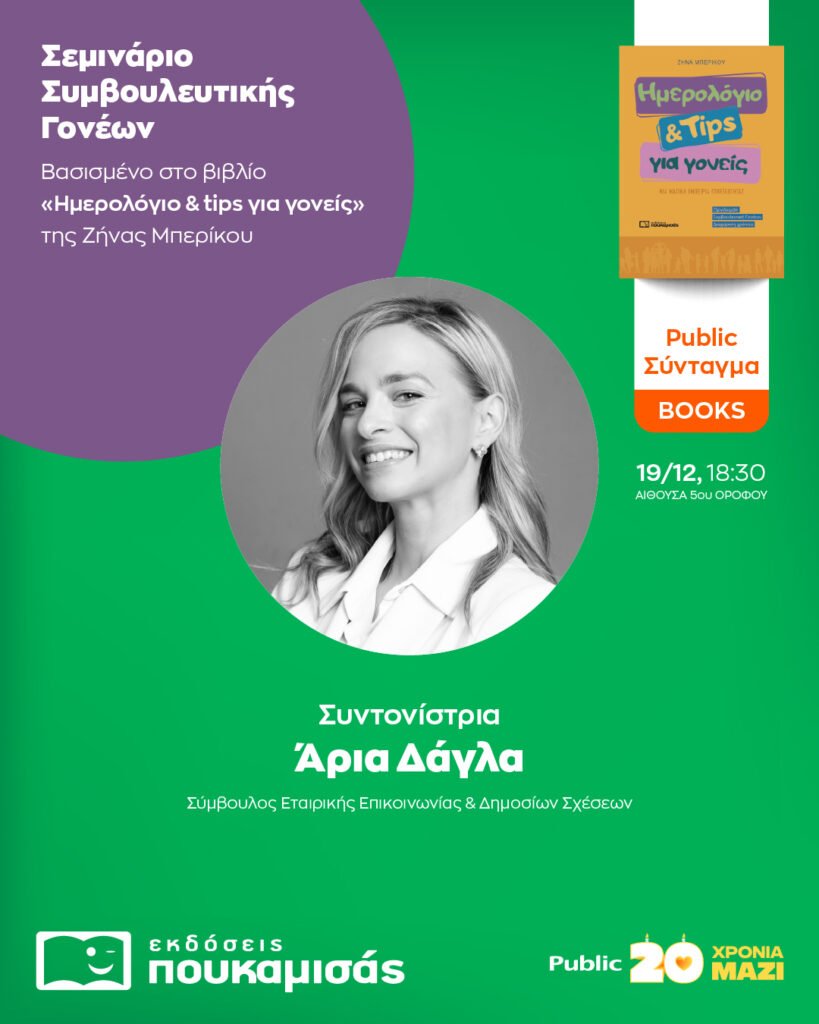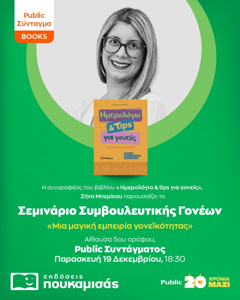 Οι Εκδόσεις Πουκαμισάς και το Public Συντάγματος παρουσιάζουν την εκδήλωση «Μια μαγική εμπειρία γονεϊκότητας», με αφορμή την κυκλοφορία του νέου βιβλίου της Ζήνας Μπερίκου «Ημερολόγιο & tips για γονείς».