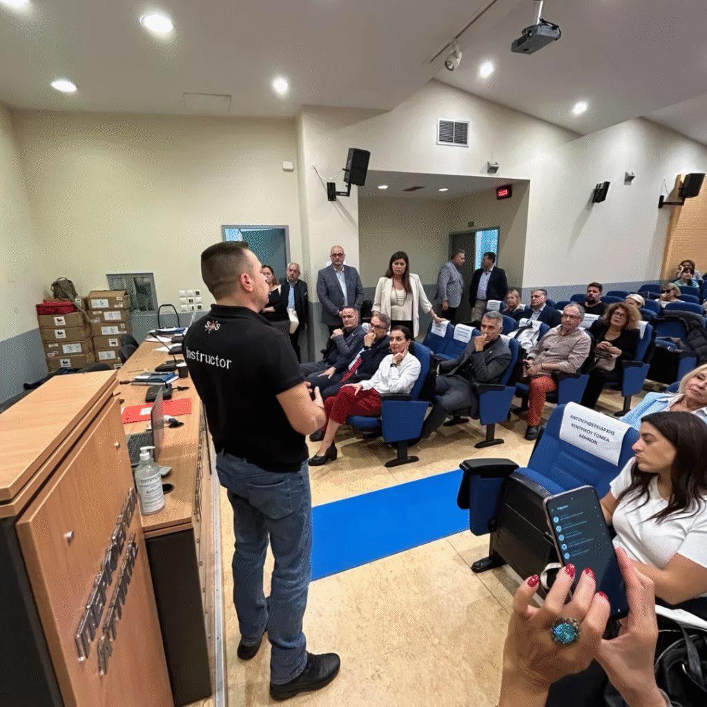 Η παραλαβή των απινιδωτών συνοδεύτηκε από ειδικά σεμινάρια Πρώτων Βοηθειών προς τους εργαζόμενους, από πιστοποιημένους εκπαιδευτές.