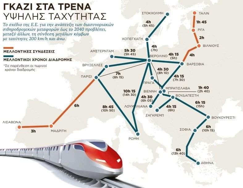 Ολοκληρωμένη δέσμη μέτρων για την ανάπτυξη διασυνοριακών σιδηροδρομικών μεταφορών, αλλά και «καθαρών» καυσίμων στις αεροπορικές και πλωτές μεταφορές, παρουσίασε χθες η Ευρωπαϊκή Επιτροπή. Τρένα υψηλής ταχύτητας θα κάνουν το δρομολόγιο Αθήνα -Σόφια σε 6 ώρες.