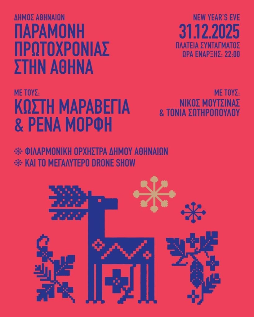 Σύμφωνα με τον Δήμο Αθηναίων, λίγο πριν την εκπνοή του 2025, ο ουρανός της πρωτεύουσας θα μεταμορφωθεί σε μια εντυπωσιακή σκηνή φωτός, φιλοξενώντας το μεγαλύτερο drone show που έχει πραγματοποιηθεί μέχρι σήμερα στην Αθήνα. Αμέσως μετά την αντίστροφη μέτρηση, ο αθηναϊκός ουρανός θα φωτιστεί από αθόρυβα και φιλικά προς το περιβάλλον πυροτεχνήματα, προσφέροντας ένα μοναδικό θέαμα με εντυπωσιακούς χρωματισμούς και καλλιτεχνικούς σχηματισμούς.